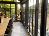 SOLVORN har høye glassvegger slik at du får god kontakt med hagen.